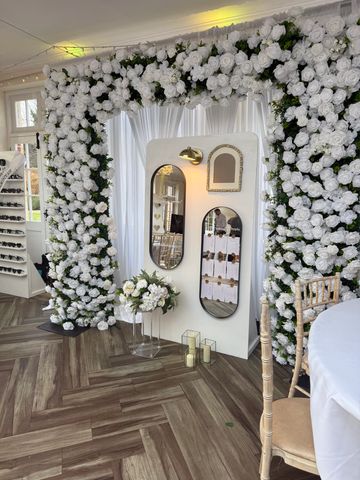 Thus unique floral wall is 2,4m squared and can also be hung onto an an arch. Looks gorgeous tables for a statement look.